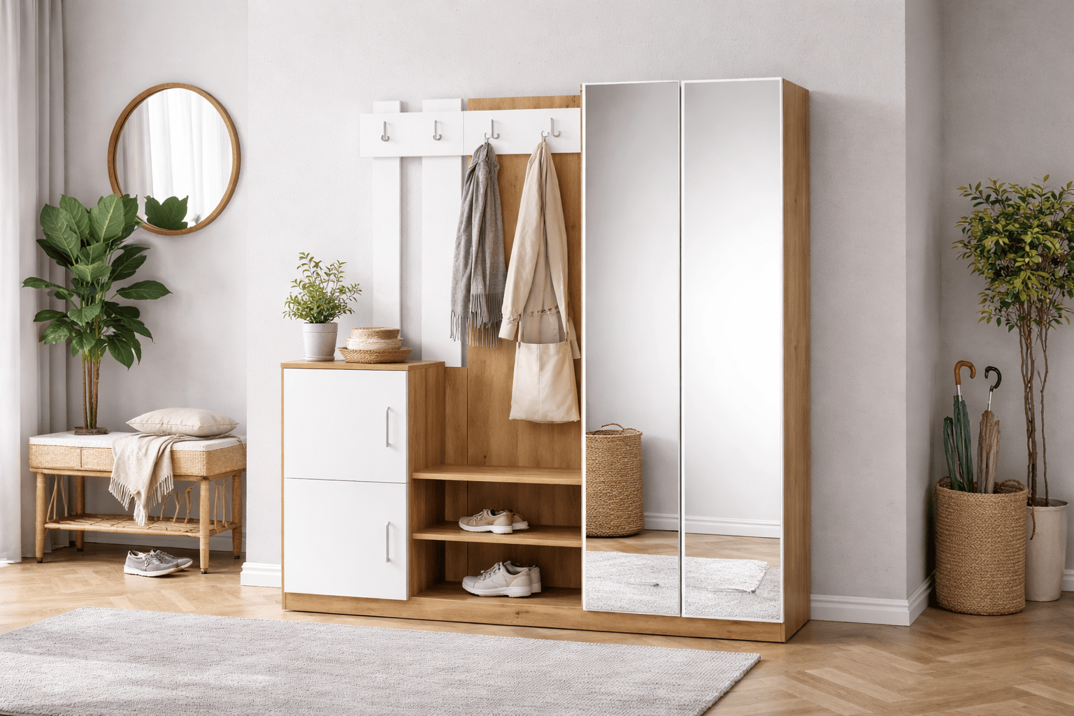 Tavolino Consolle in Legno con Stoccaggio per Corridoio e Soggiorno